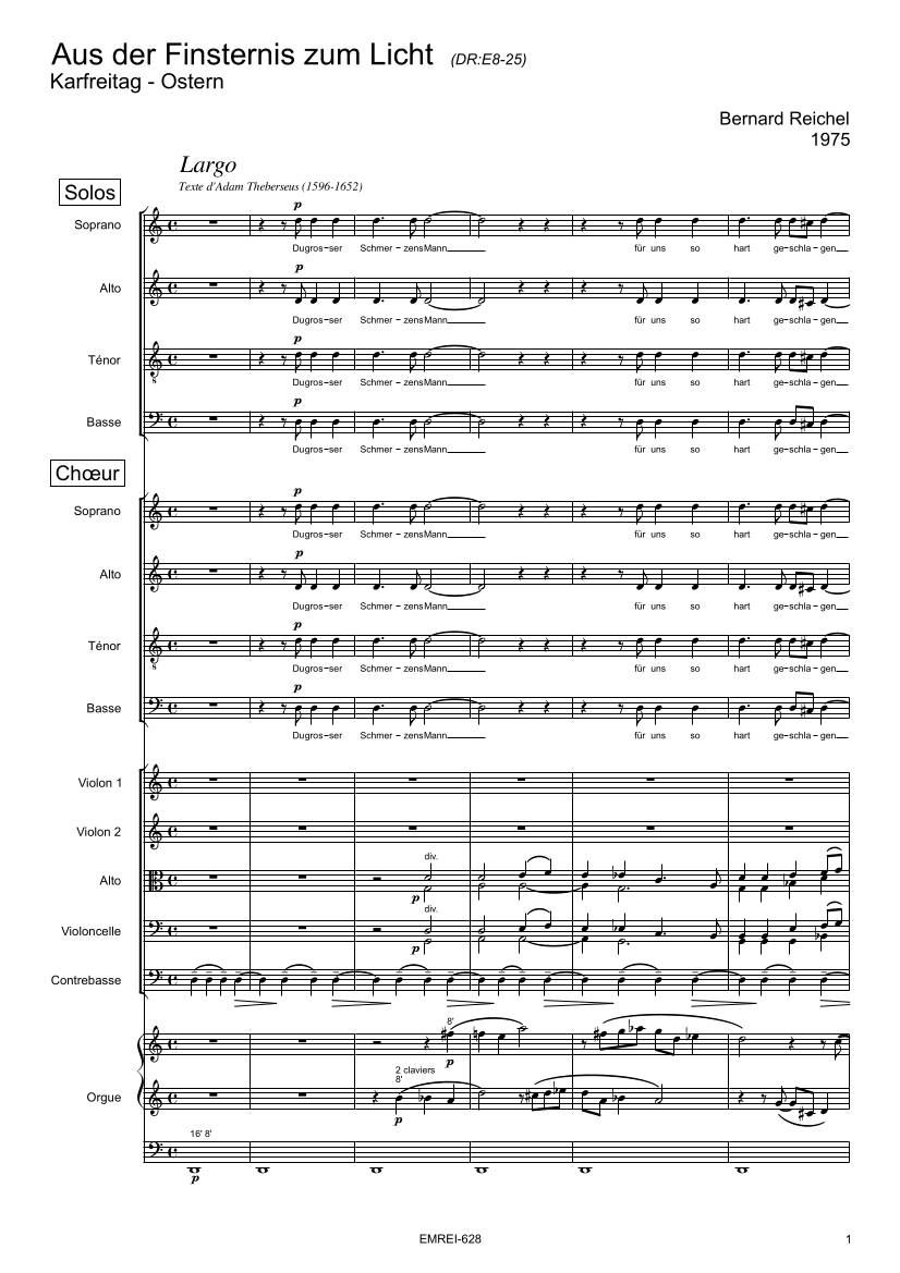 Pour Soprano solo, Alto solo, Ténor solo, Basse solo, Chœur à 4 voix mixtes,